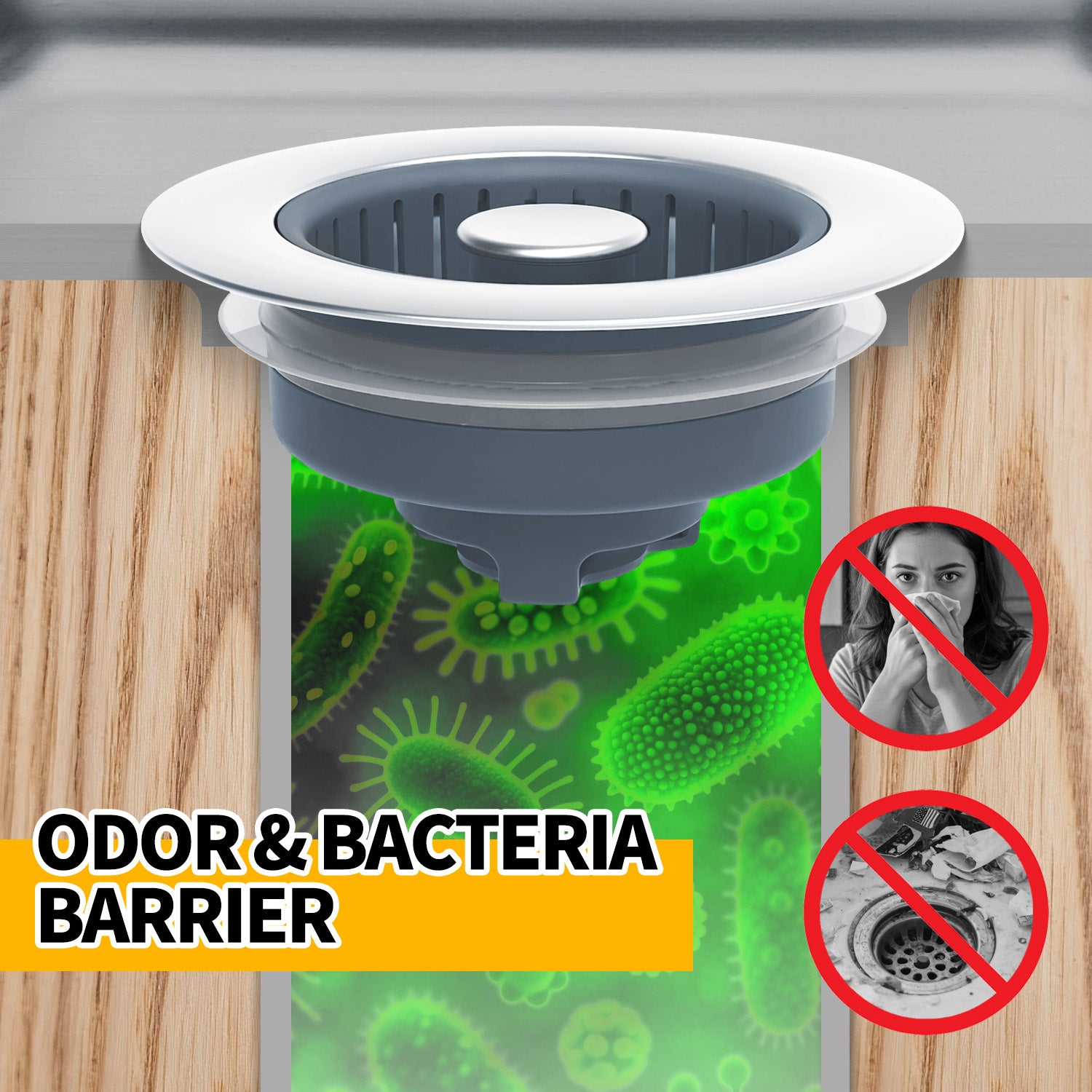 - Innovative 2Pack 3-in-1 Design –2Pack 3-in-1 Versatile Functionality – Get twice the convenience with this 2-pack sink drain strainer set. Functions as a stopper, strainer, and odor blocker—simply press to retain water, drain smoothly, or prevent clogs.