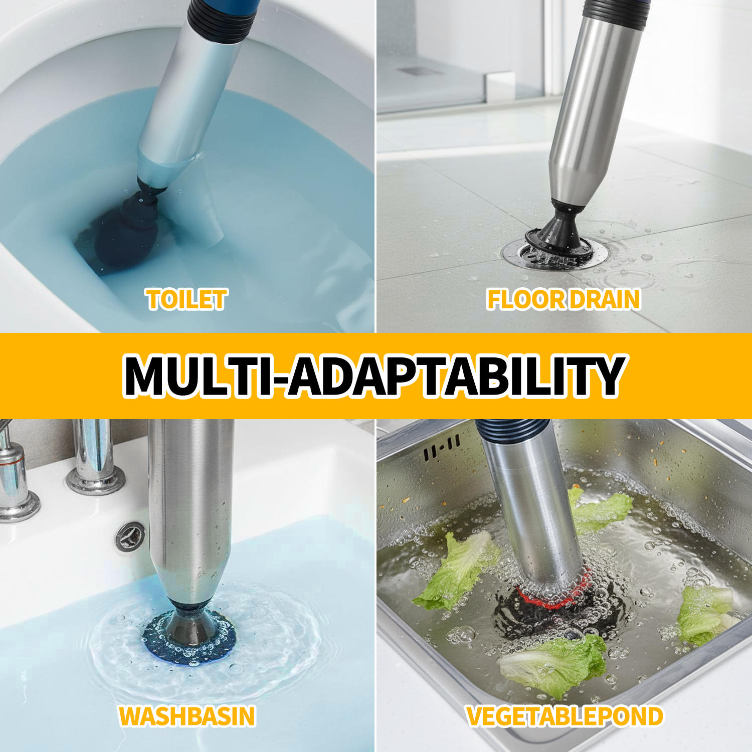 - Versatile Usage: This multi-functional air plunger is not limited to toilets alone; it can also be used for unclogging sinks, showers, kitchen drains, and pipelines